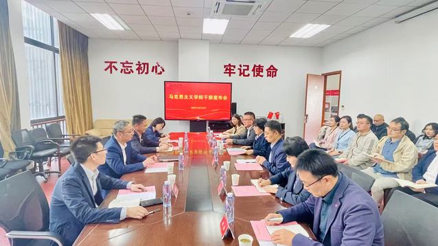 2025年10月23日,马克思主义学院干部宣布会在临港校区图文中心924会议室召开。校党委书记宋来,校党委副书记、副校长朱克勇,校党委常委、组织部部长赵建明,组织部副部长李艳出席会议,学院教师代表参加,会议由赵建明主持。